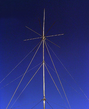 Artsy view of the Sirio 827 sitting 60 feet up on the Channel Master telescoping mast. |